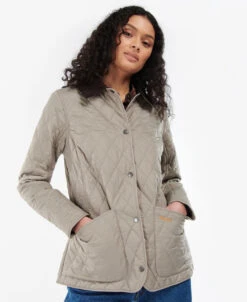 This stylish women’s quilted jacket is designed with flatteringly shaped body seams for a beautifully feminine silhouette. The sit-down cord collar and diamond-quilted outer creates the signature Barbour look.