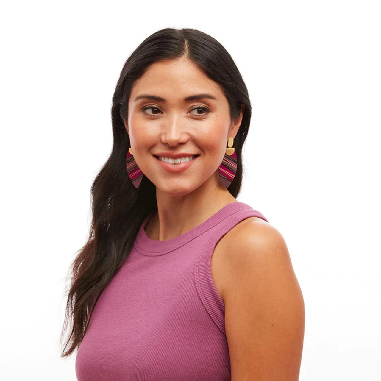 Featuring seasonal hues of dusty lavender goose and pink rooster feathers, the Encyclia adds a touch of feminine flair to any outfit. Show off your style and let this chic drop earring take your look to the next level.