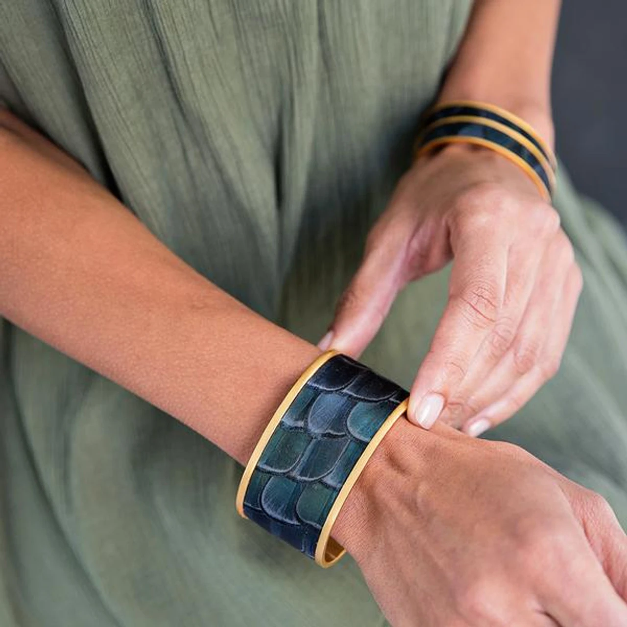Packaged with Care | Arrives in a hand-branded, pine gift box with a suede lined jewelry bag. Includes a list of feathers used and instructions on how to care for your cuff.