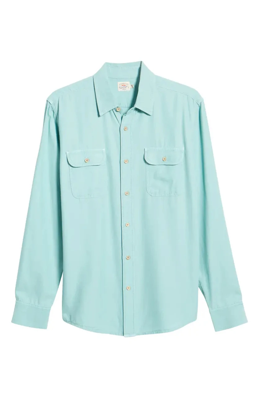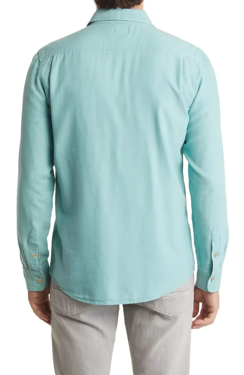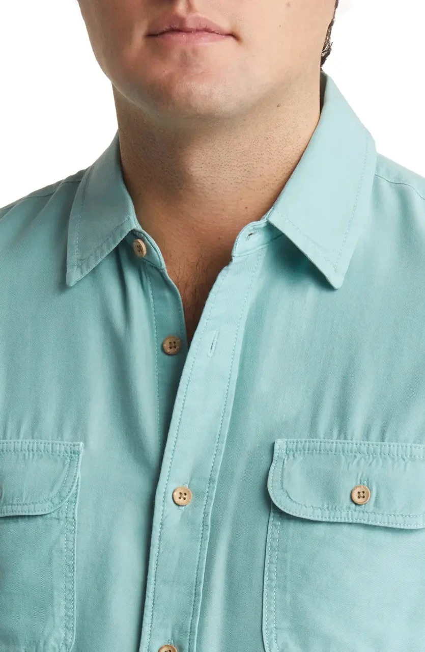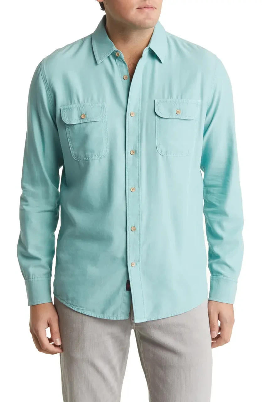 Garment-dyed and washed for an aged-look fade, this cotton-blend sport shirt is finished with coconut buttons to give it even more of vacation vibe.