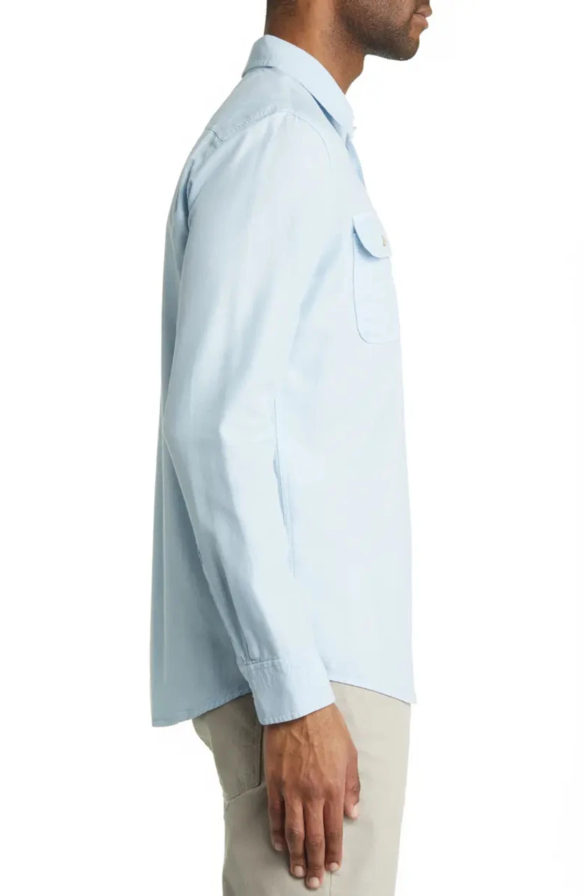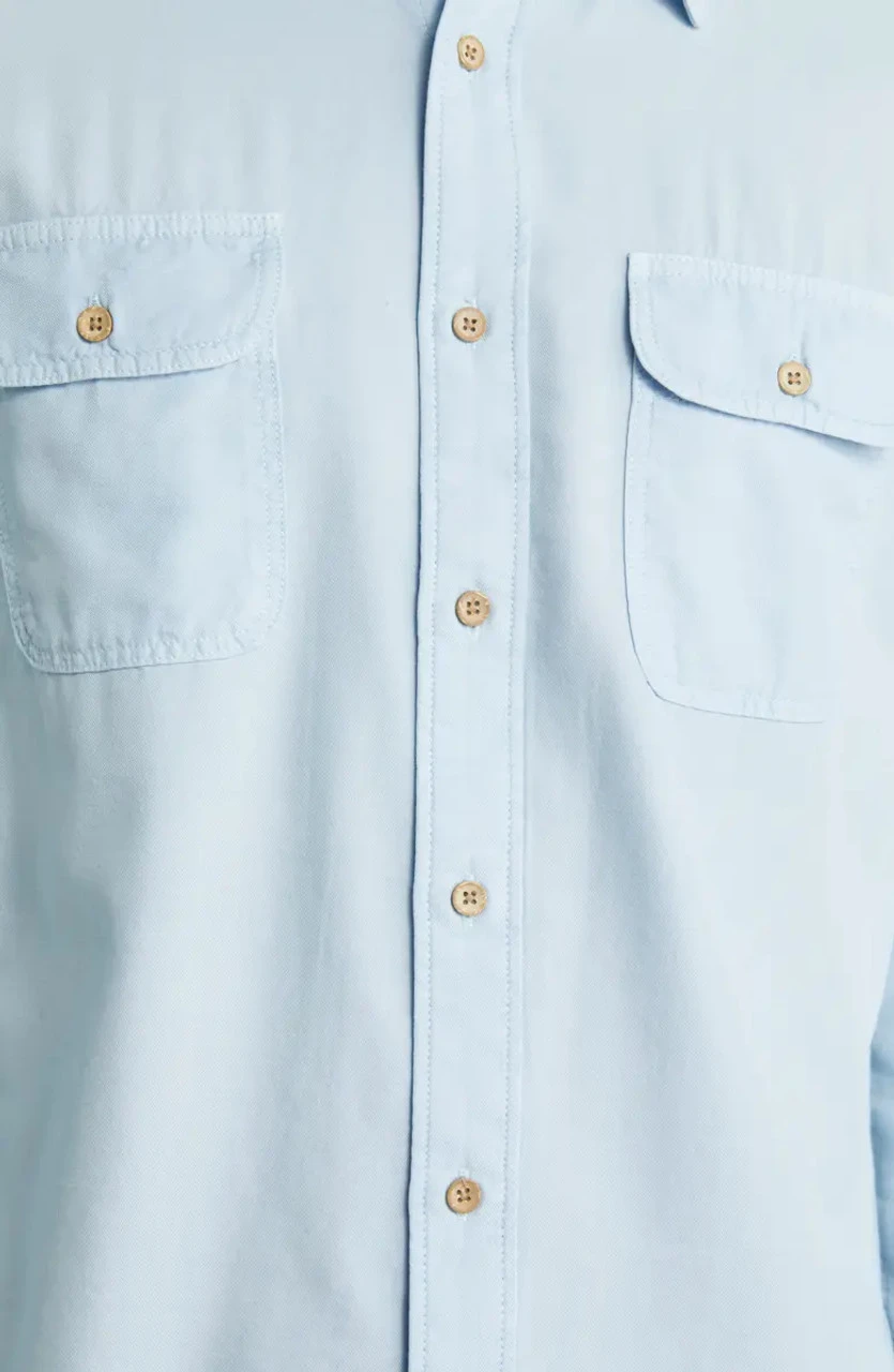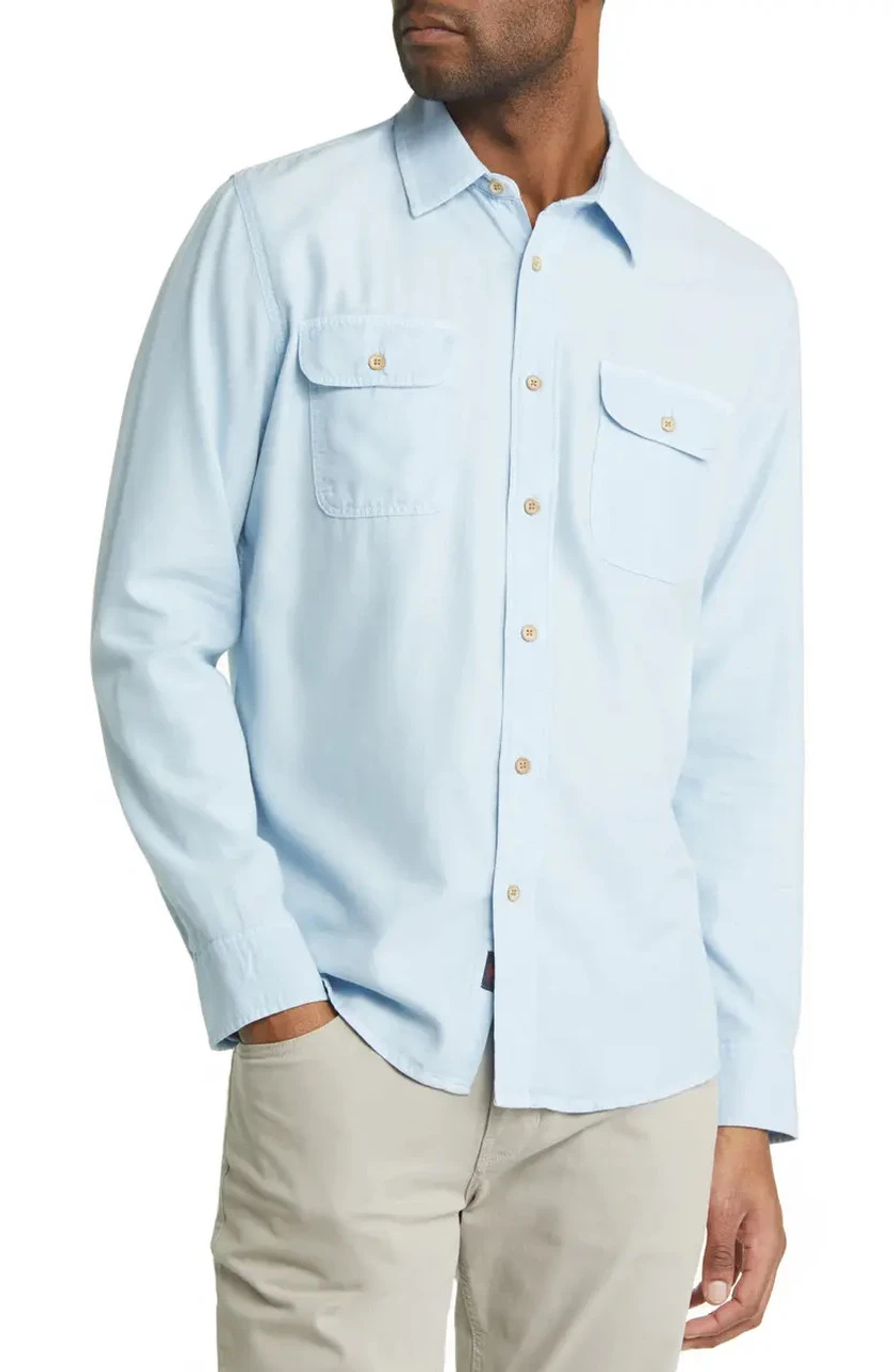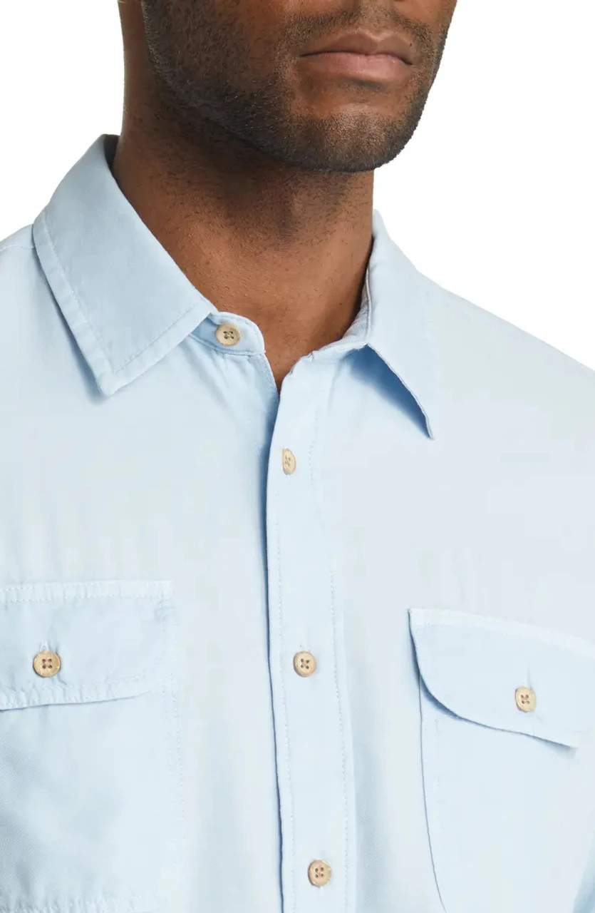 Garment-dyed and washed for an aged-look fade, this cotton-blend sport shirt is finished with coconut buttons to give it even more of vacation vibe.