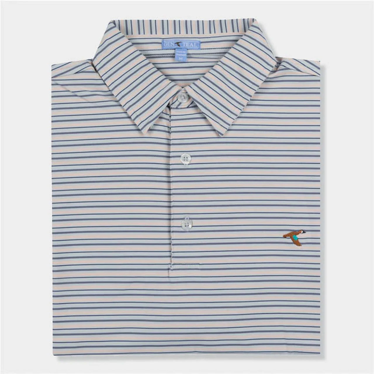 Designed to be lightweight and breathable, the GenTeal Performance Polo will keep you comfortable both indoors & out. Moisture wicking jersey knit of spandex and polyester will ensure you retain your poise and appearance whether the round you are enjoying is of golf or cocktails. This polo also includes our innovative sewn-in collar stay to keep the curl away.