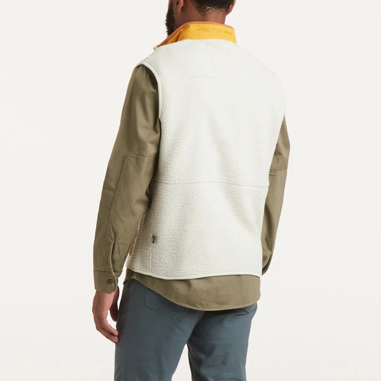Named for the Chisos Mountains in the wilds of West Texas, our Chisos Fleece Vest is the perfect companion for a day when temperatures vary dramatically between dawn and dusk. 100% polyester sherpa fleece provides warmth for the core while remaining lightweight and breathable. We added simple kangaroo front pockets, a single snap pocket at the left chest, and a tonal reminder to Heed the Call on the back collar. Use it as a stand alone for autumn pursuits like throwing footballs and frying turkeys or add it in as a mid-layer on the ski slopes or wherever you need core warmth.
