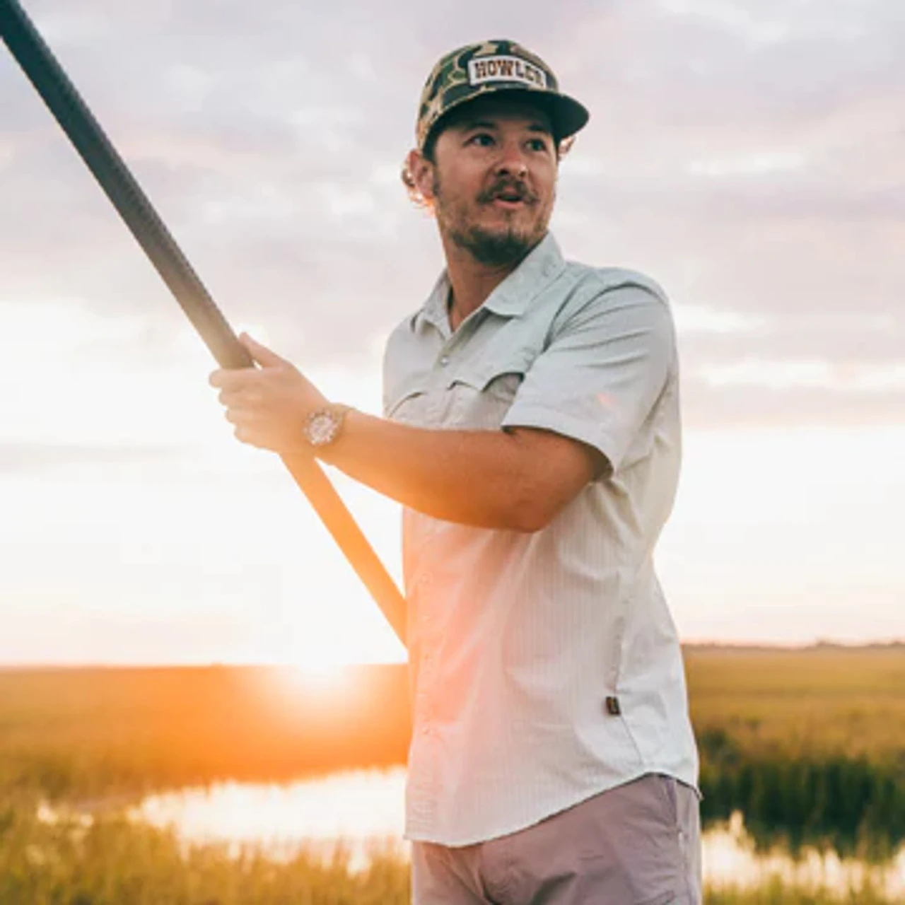 Our Snapbacks run a bit larger and feature a taller crown than our standard mesh back hats. The pliable flat brim features a glare cutting navy under side, and is fully shapeable for a custom fit. Howler monkey icon tag on the back left. Snap back closure.