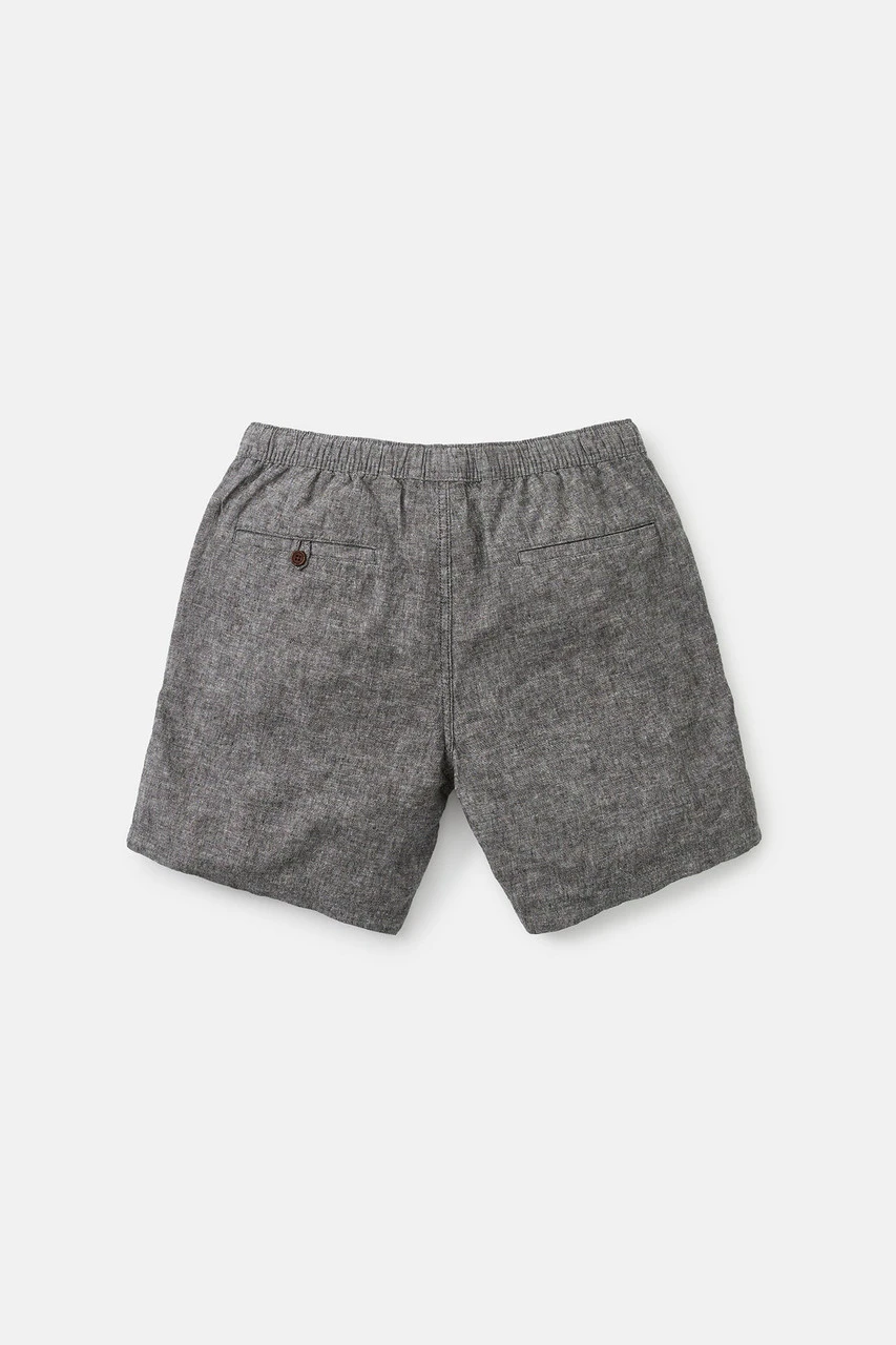 Made from a 75% cotton 25% linen-blend fabric, The Isaiah Local Short is both comfortable and good-looking. Utilizing our popular 17″ outseam ‘Local Short’ block, The Isaiah features front welt side seam pockets, elastic waistband with drawcords, back welt pockets, faux fly, and internal diagonal pinstripe binding.