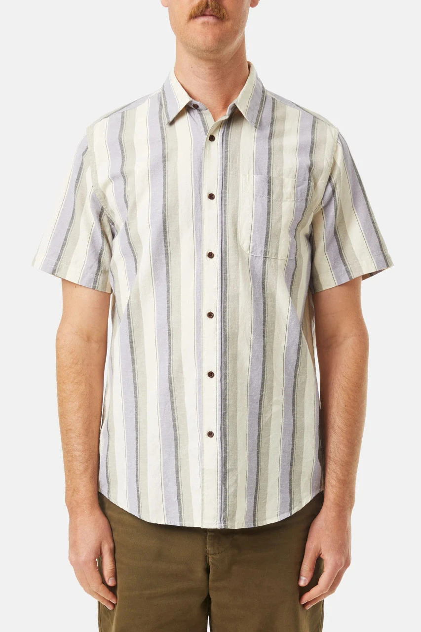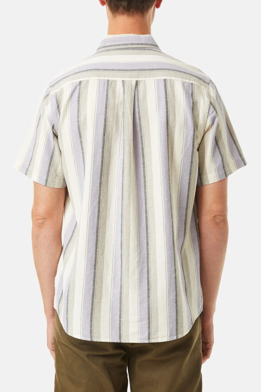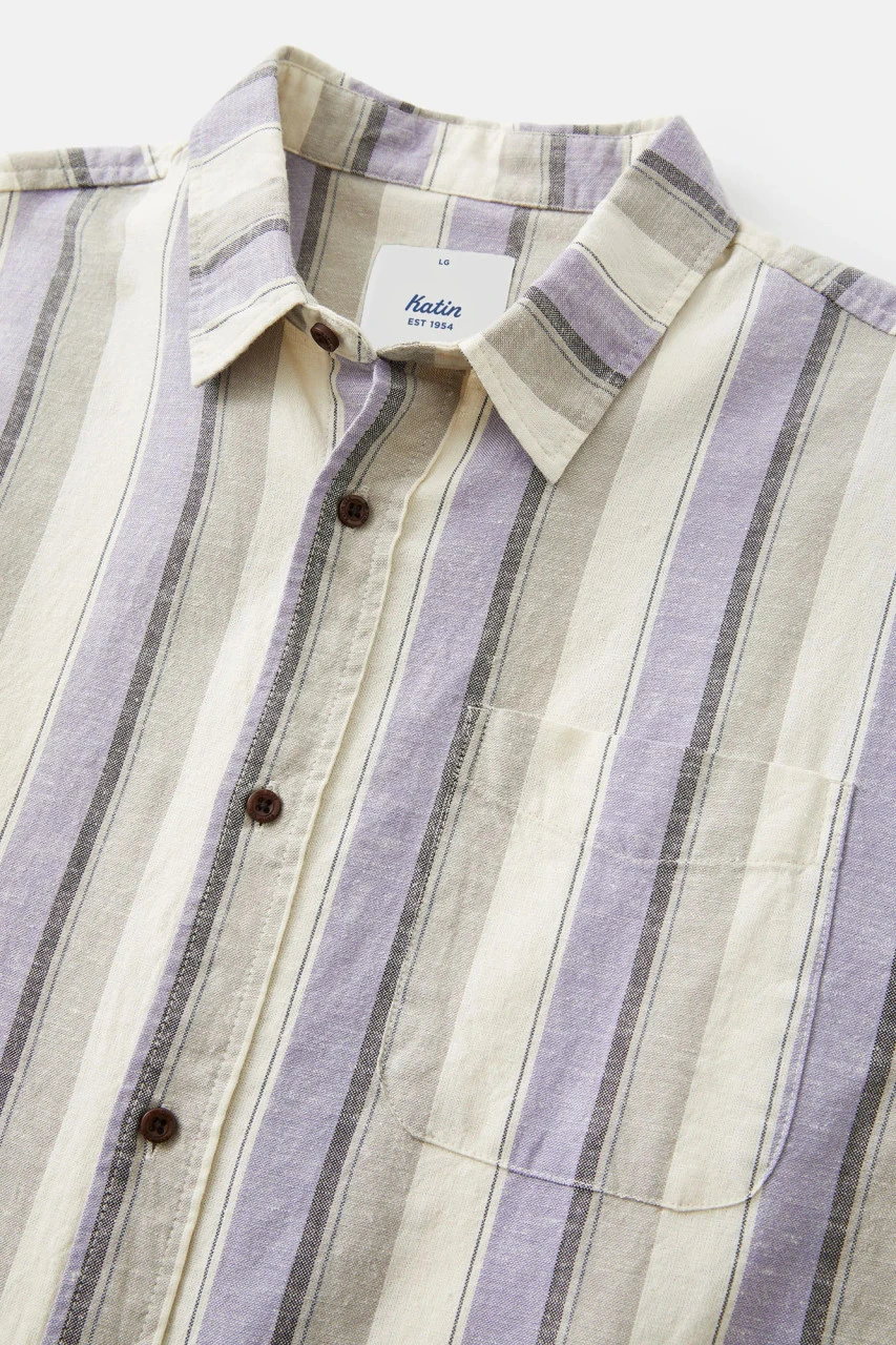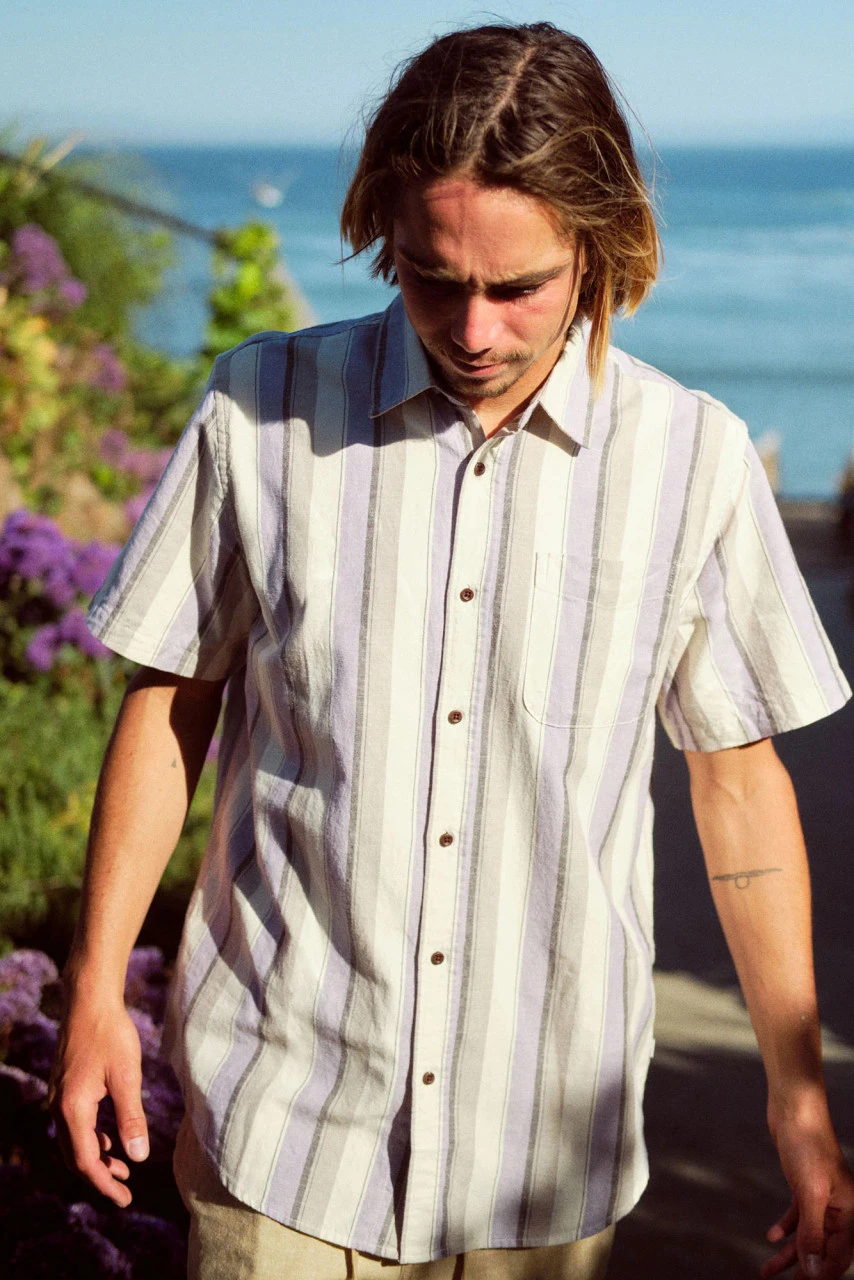 The Kenwood Shirt features a custom vintage-inspired striped allover pattern atop a breathable cotton/linen button-up woven shirt.