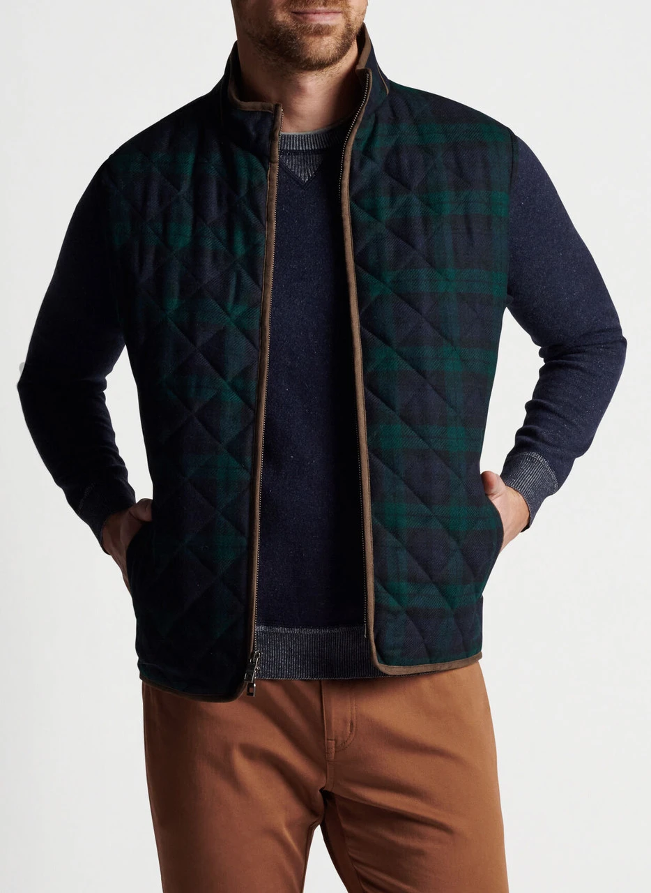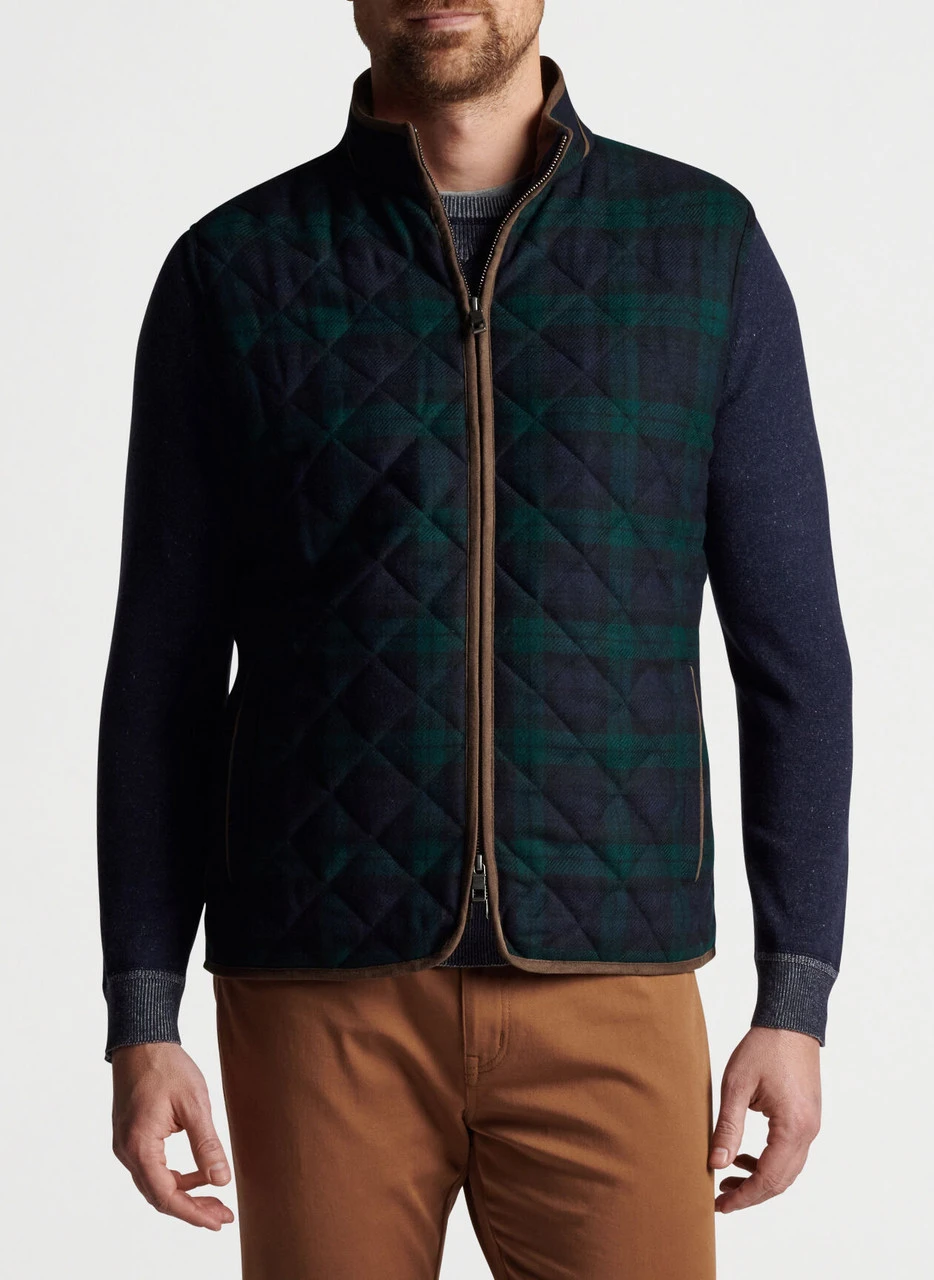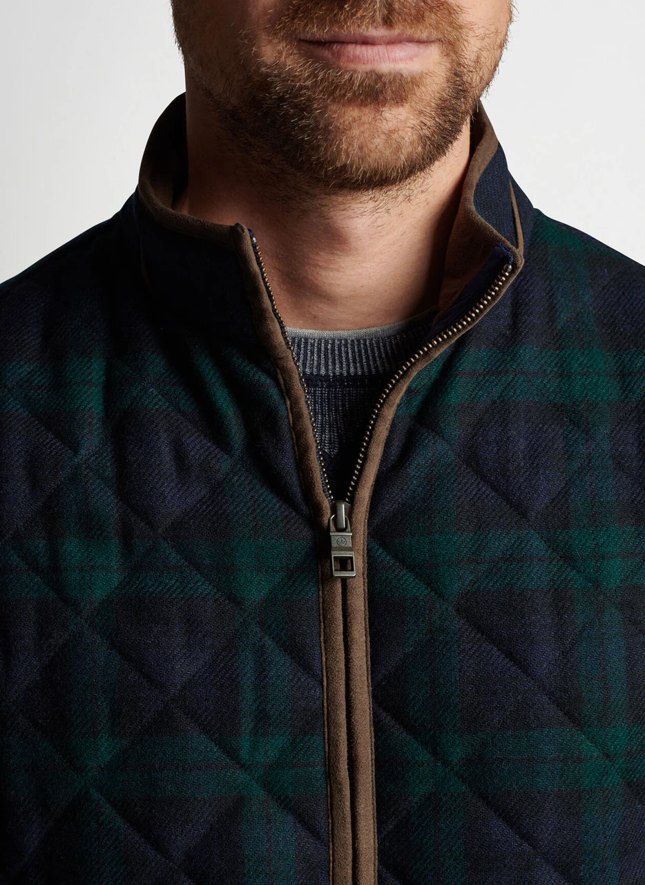 Your most versatile option for fall and winter weather, this iconic quilted vest is constructed from English Shetland wool in a timeless buffalo plaid pattern. The exterior is windproof for optimal protection in challenging weather conditions, and the interior is fleece-lined for ideal warmth. Finished with six interior pockets for ultimate functionality.