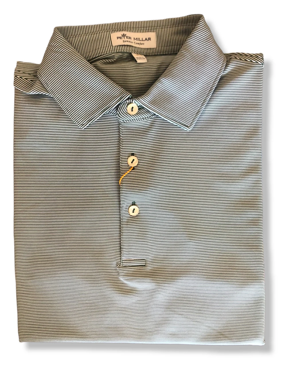 The Jubilee stripe polo is made from our signature stretch jersey fabric. The properties of this fabric offer four-way stretch, moisture-wicking, quick-dry, odor control, easy-care and UPF 50+ sun protection. Styled with Sean self-fabric collar and three-button placket.
