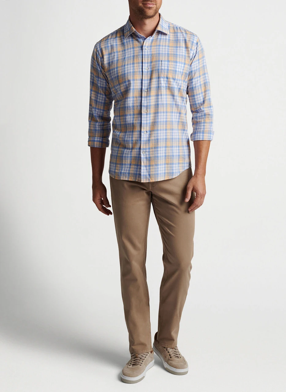 This coastal-ready sport shirt is made from an ultra-soft and breathable cotton. It’s finished with a spread collar, French placket and a slightly shorter length for untucked wear.