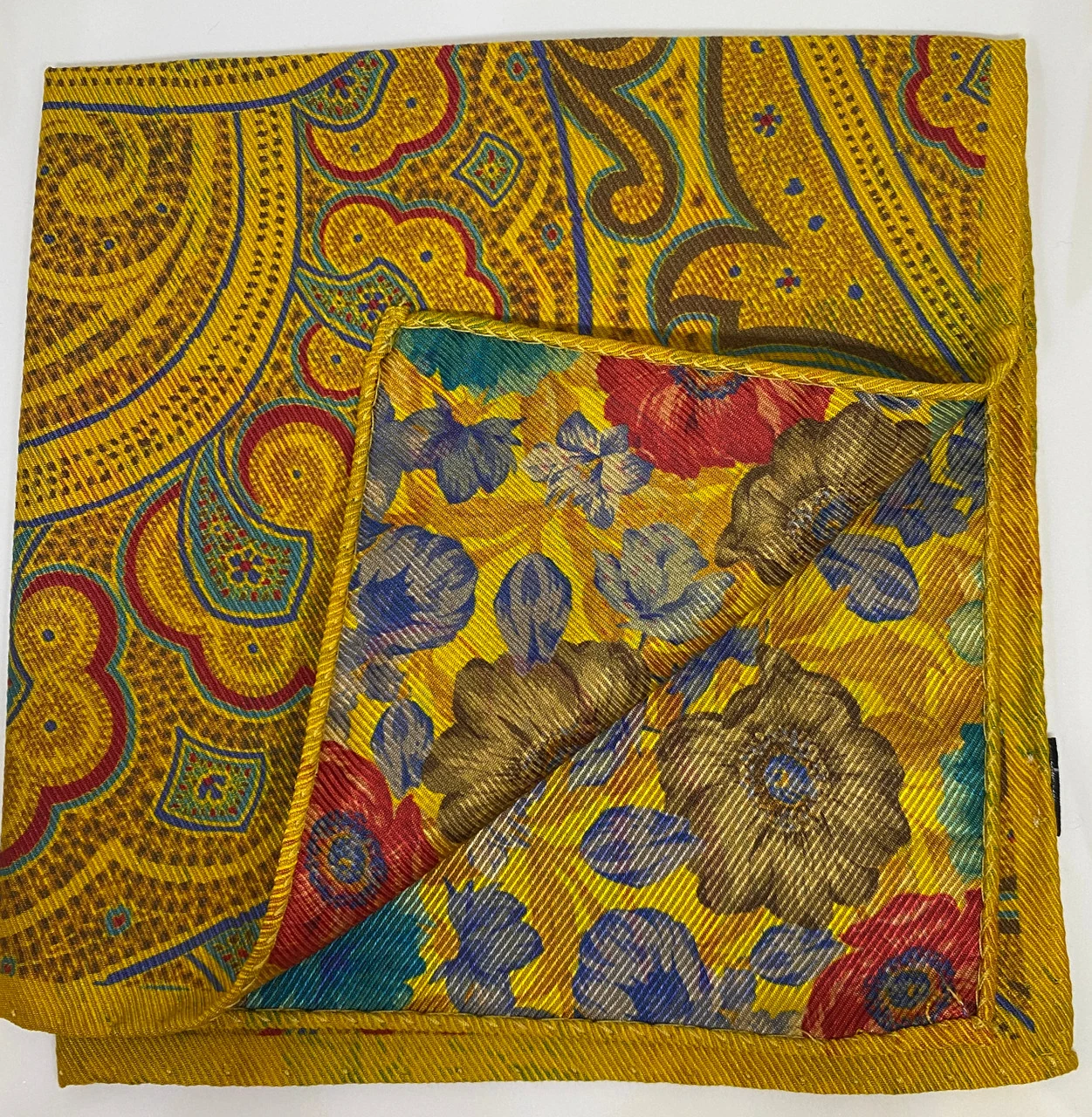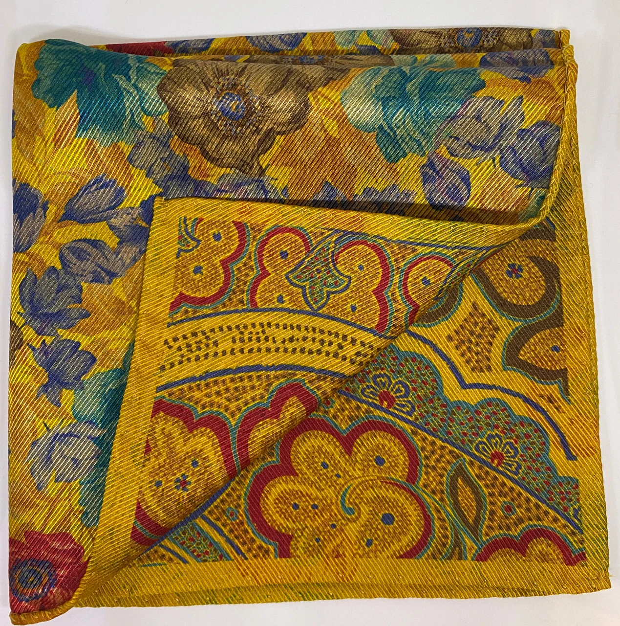 R Hanauer Gold Paisley/Flower Pocket Square