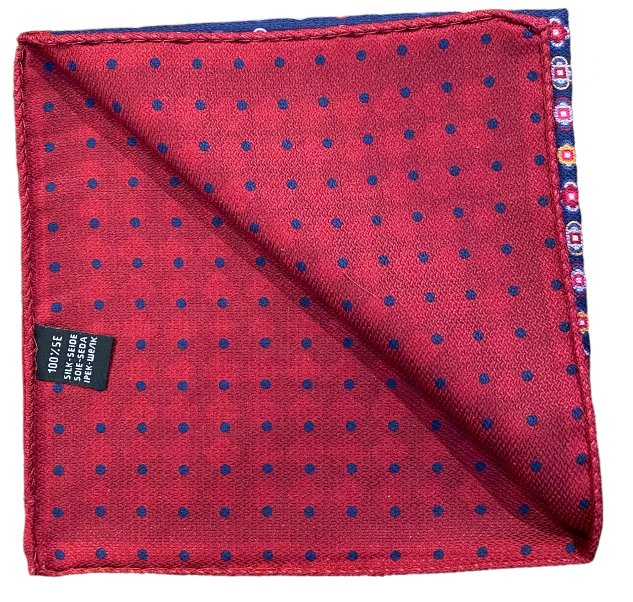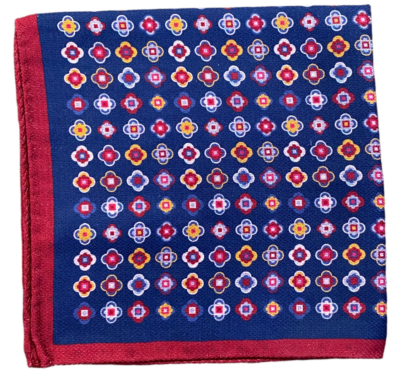 R Hanauer Reversible Clover Dot Pocket Square: Navy
