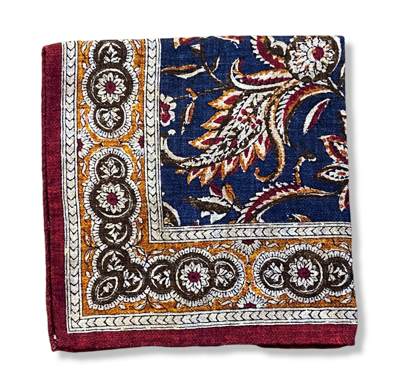 R Hanauer Reversible Paisley Medallion Pocket Square: Red/Orange