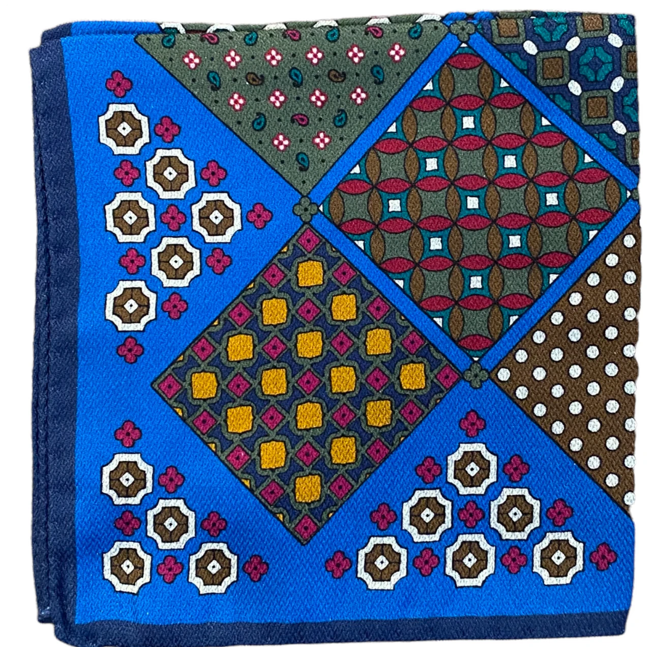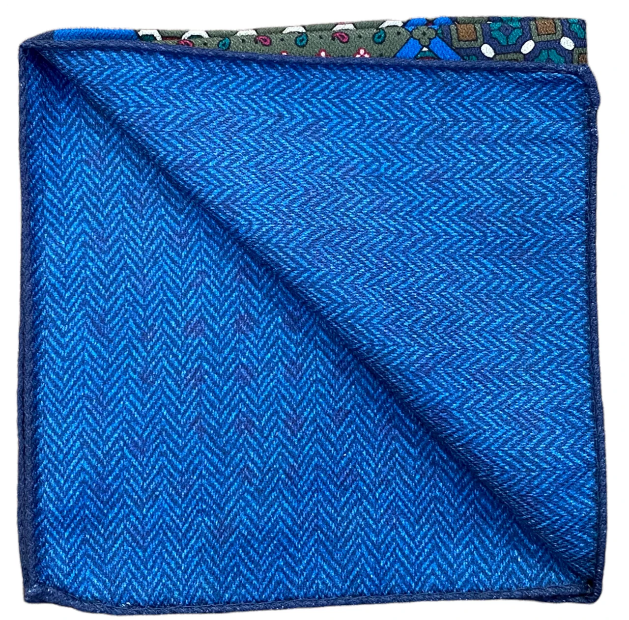 R Hanauer Reversible Patchwork Herringbone Pocket Square: Blue