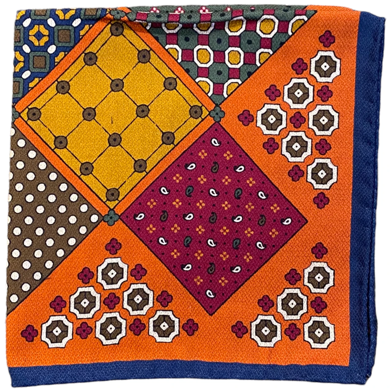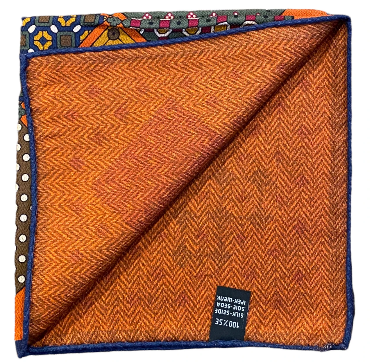 R Hanauer Reversible Patchwork Herringbone Pocket Square: Henna