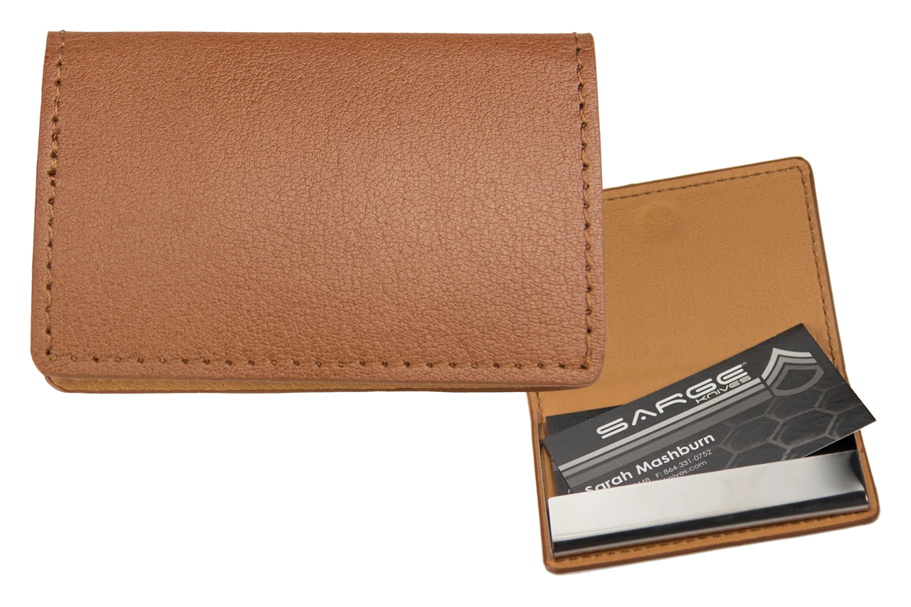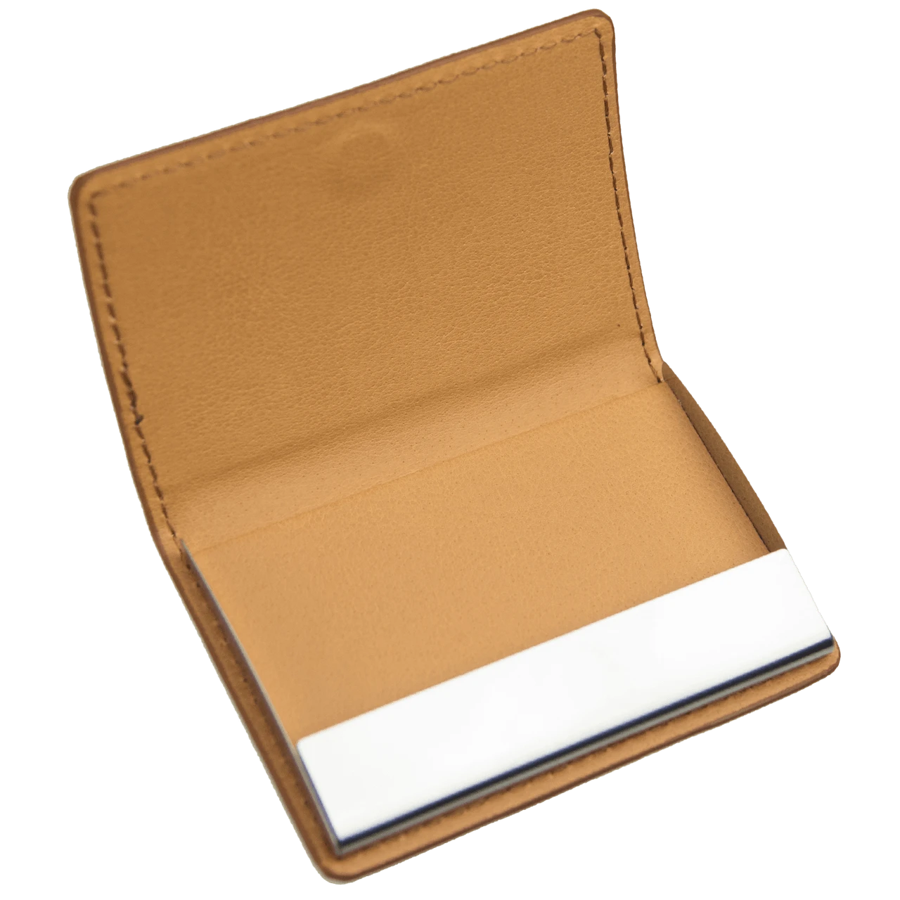 Guilty of using a rubber band or clip to hold your business cards together? Let us help you make a better impression with our leather business card holder. The slender design fits comfortably in your suit pocket or purse while the magnetic closure helps your cards to be easily accessible when networking.