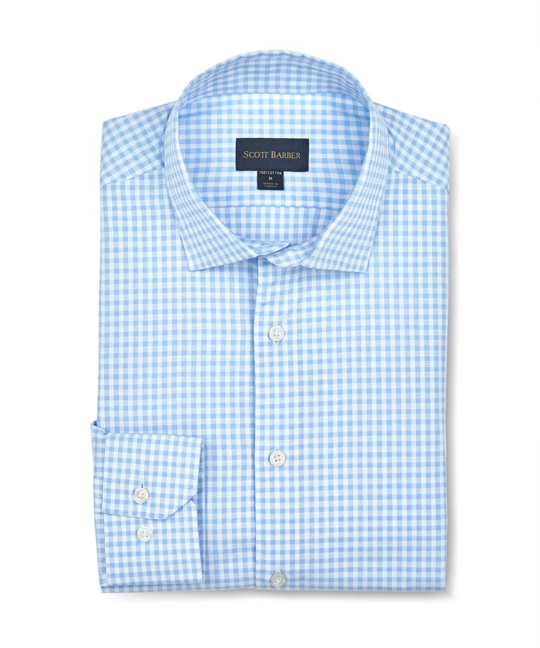 Fine, 60/1 organic cotton yarn in a textured gingham pattern.