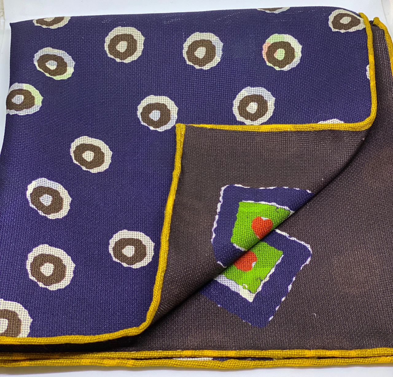 Seaward And Stearn Geometric Square Pocket Square: Mustard/Brown