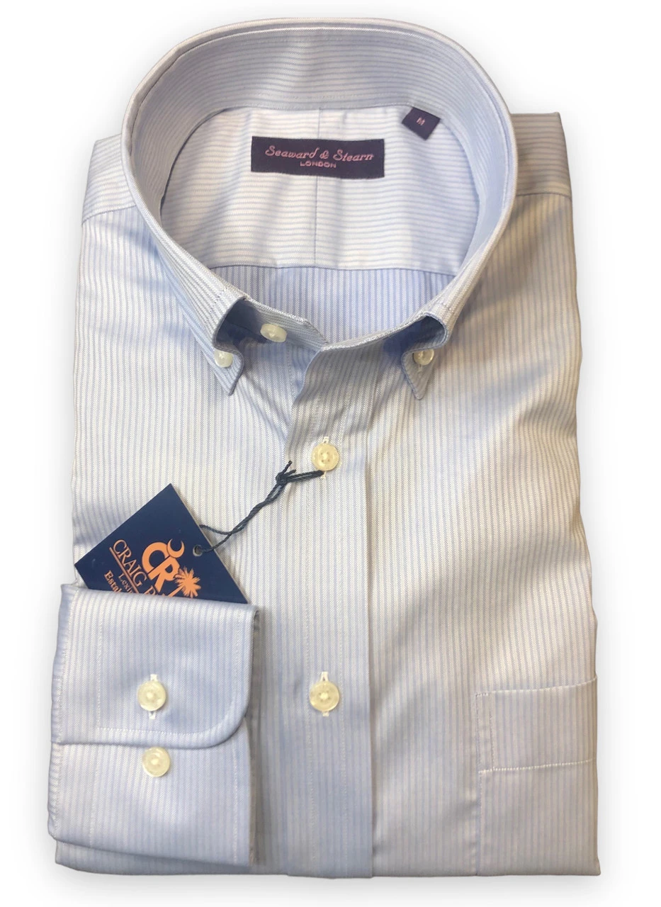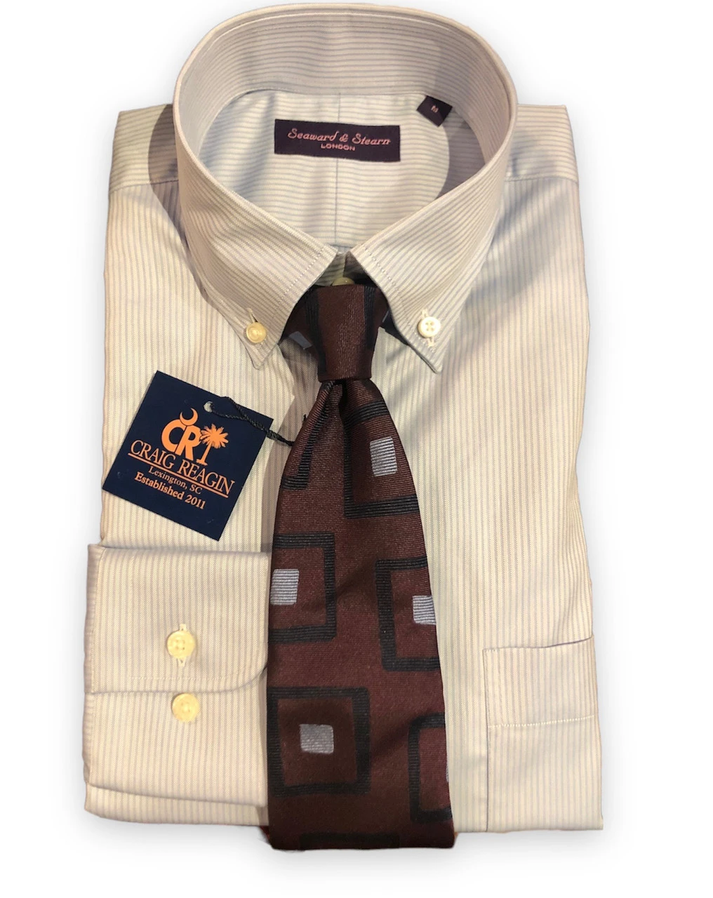 Neat and classic design with a button down collar. Directional herringbone creates the visual effect of a tonal vertical stripe.