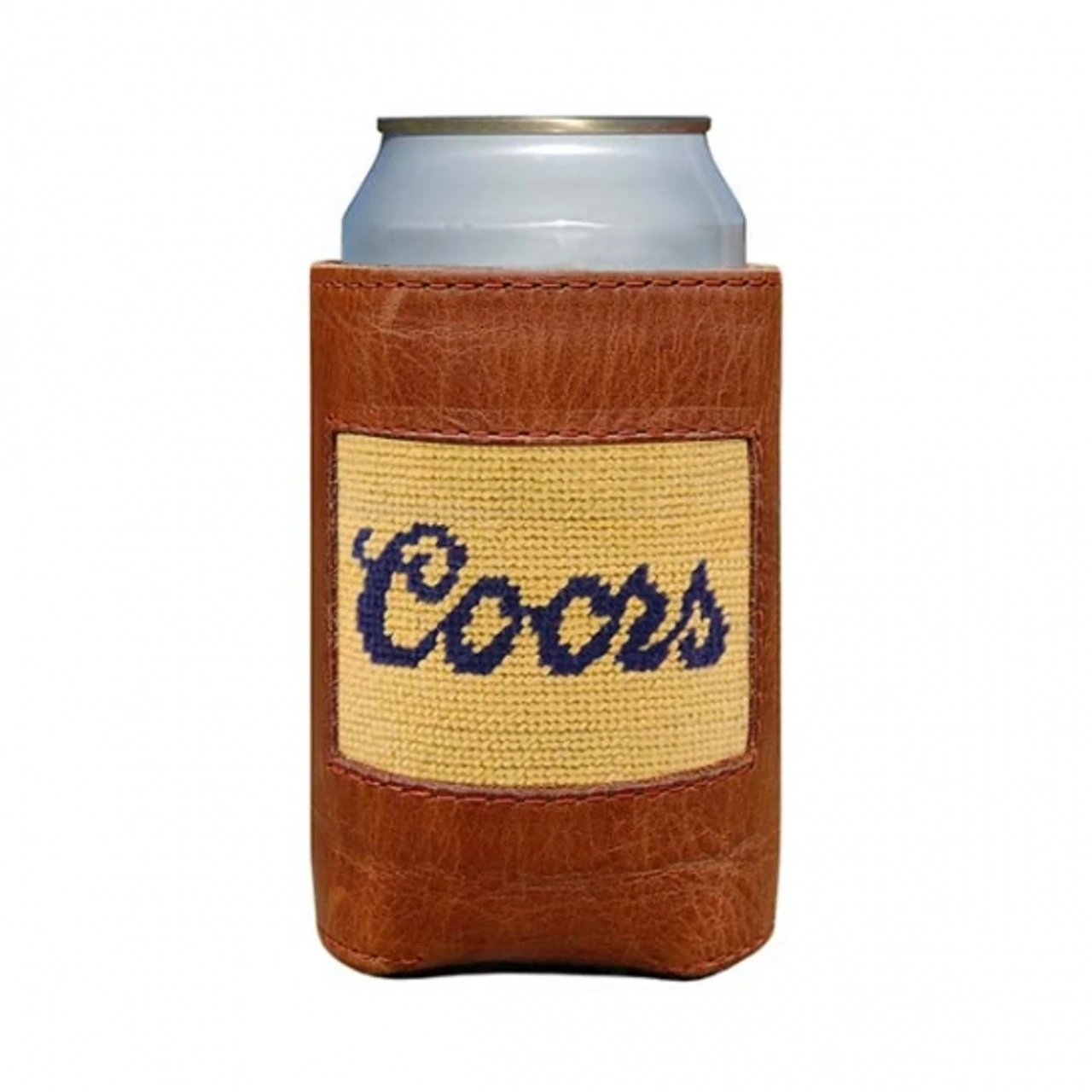 Our coozies combine our signature 100% hand-stitched needlepoint with an Italian, full grain leather exterior and neoprene liner. Keeping you and your drink cool.