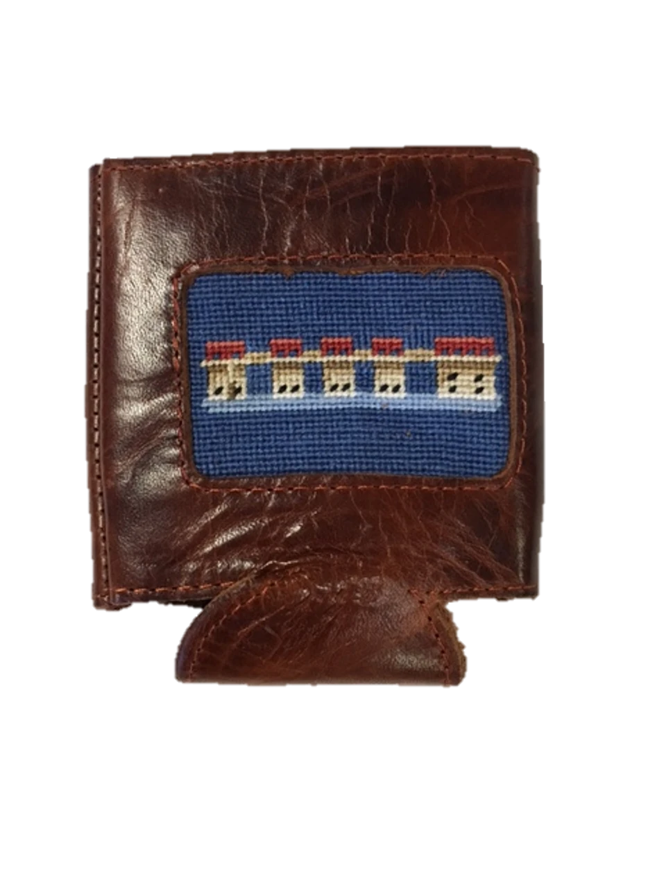Custom Leather and Needlepoint Coozie from Smathers and Branson featuring the Dam Towers from Lake Murray of South Carolina