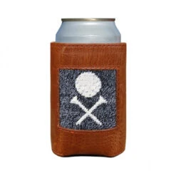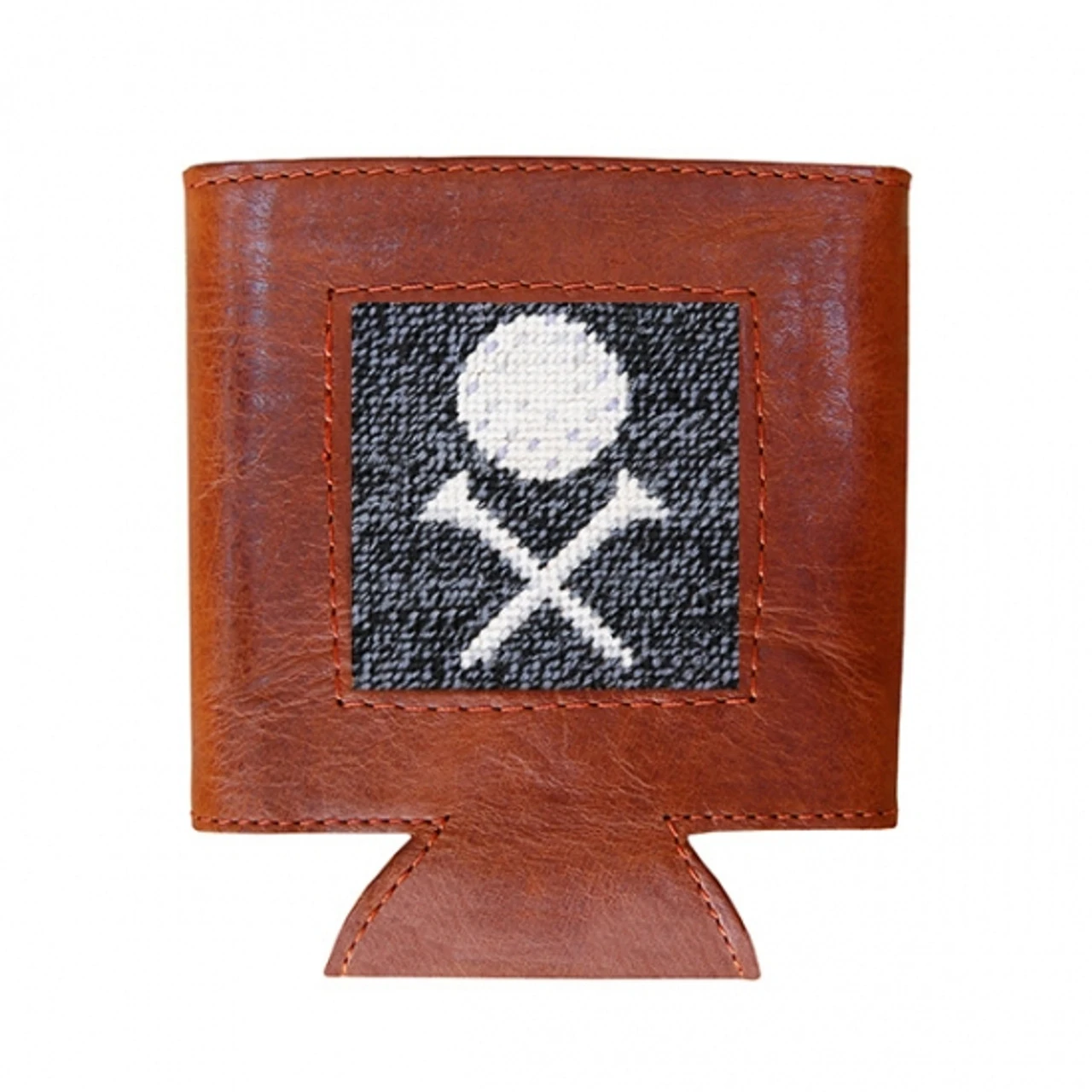 Our coozies combine our signature 100% hand-stitched needlepoint with an Italian, full grain leather exterior and neoprene liner. Keeping you and your drink cool.