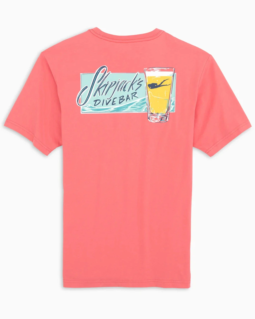 Dive right into vacation mode in a soft, cotton and stretch blend t-shirt. The graphic features a beverage and wave design.